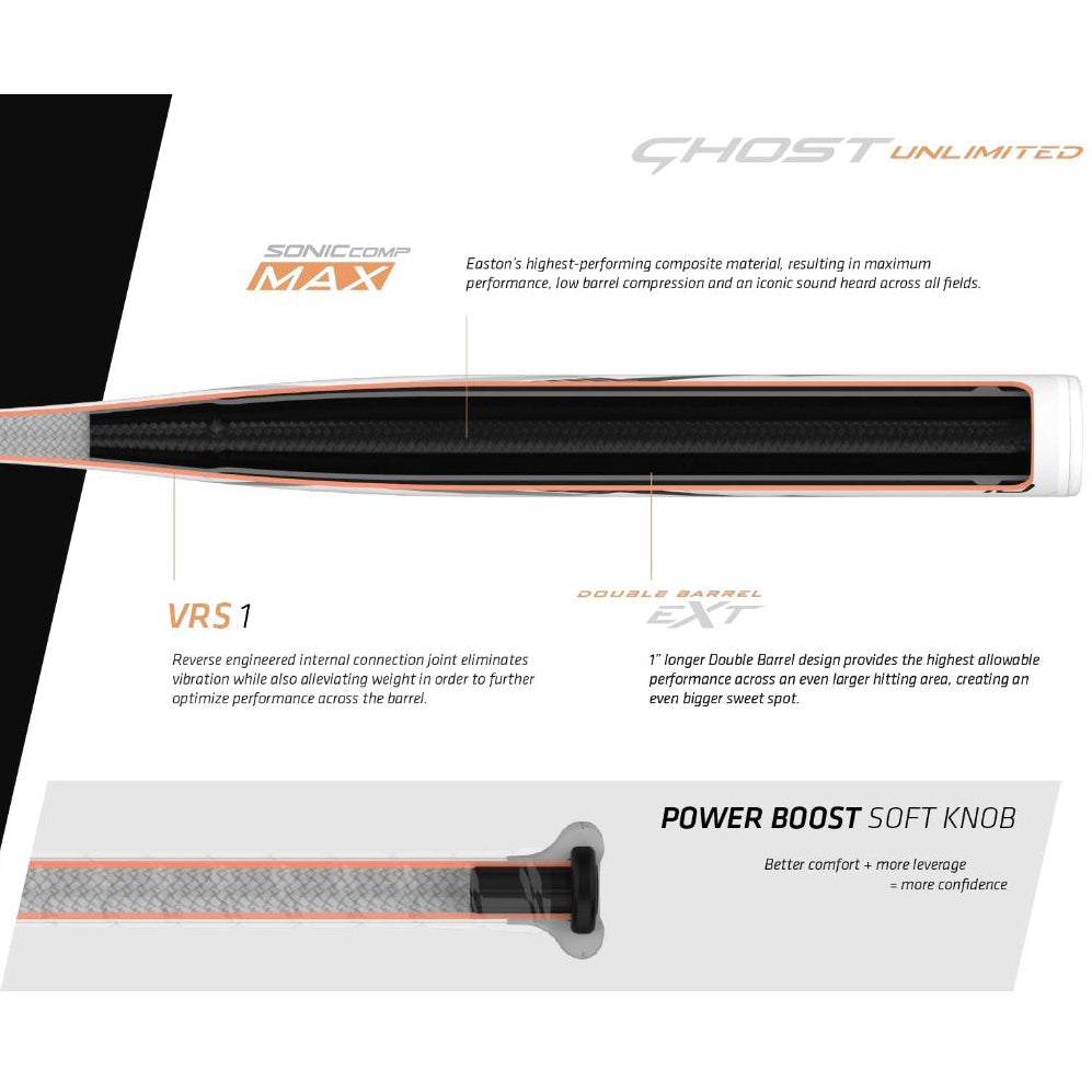 Featuring the latest in bat design innovation, the Ghost Unlimited fastpitch bat is here to take your game to another level. As the first one-piece bat in the Ghost family, the Ghost Unlimited offers more ways to optimize your offense than ever before. Packed with our highest-performing composite and special internal connection features, this bat is a worthy addition to the #1 series in fastpitch.
