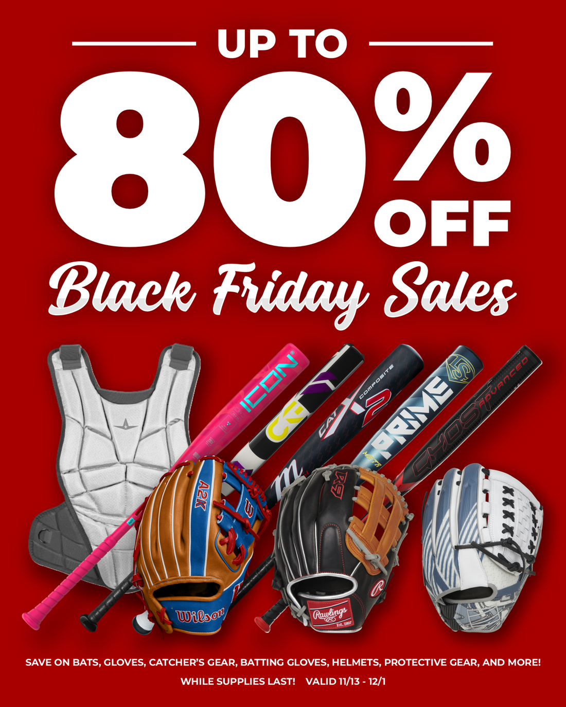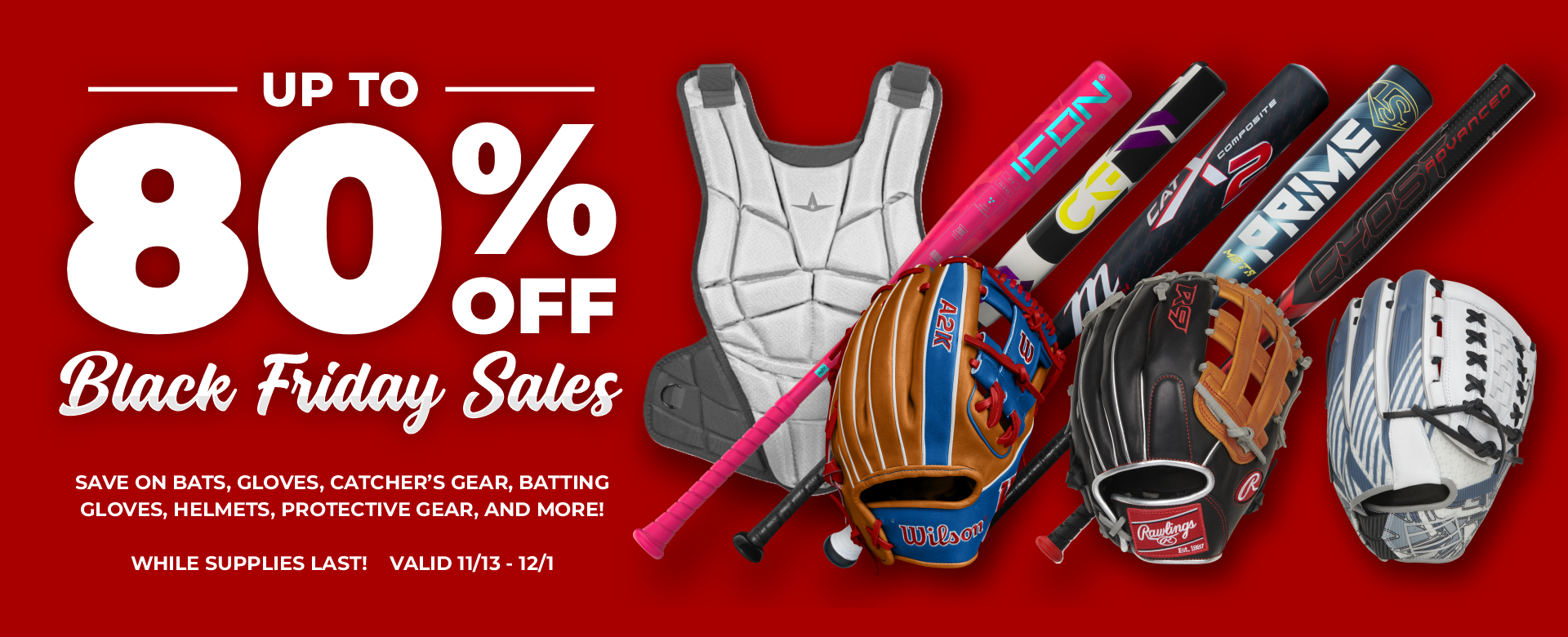 Shop the biggest savings of the year NOW! Score up to 80% off original prices during the Diamond Sport Gear Black Friday & Cyber Monday Sale! Sales include select baseball and softball bats, gloves, protective gear, batting gloves, batting helmets, apparel, footwear, bags, catcher’s gear, and more!
