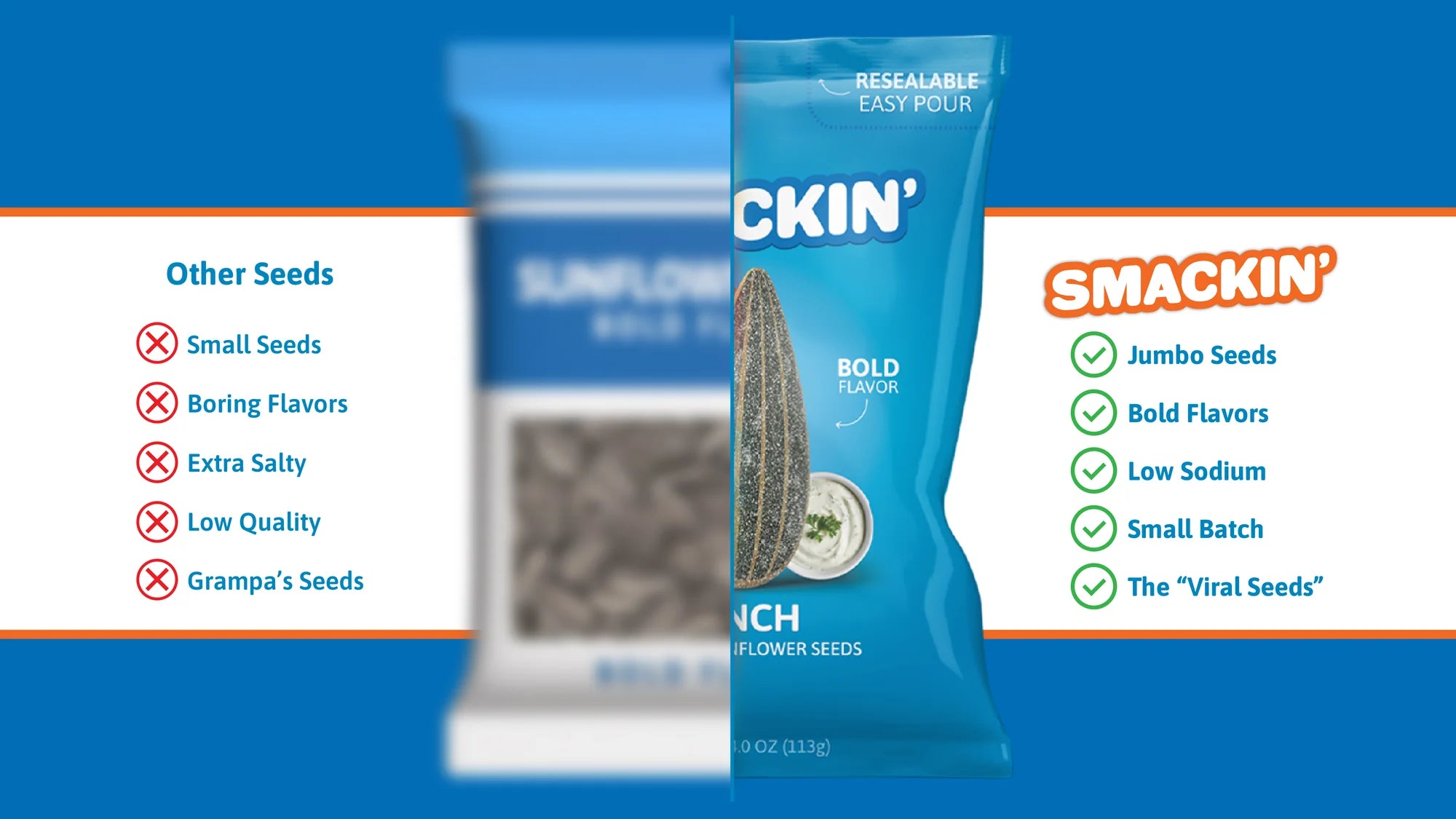 Our sunflower seeds are selectively sourced from the highest quality sunflowers and produced in small batches to ensure that craft experience. With only 380-540mg of sodium per serving, SMACKIN' won't leave your mouth feeling like sandpaper. Created out of a desire for better, we promise once you try SMACKIN' you'll never go back!